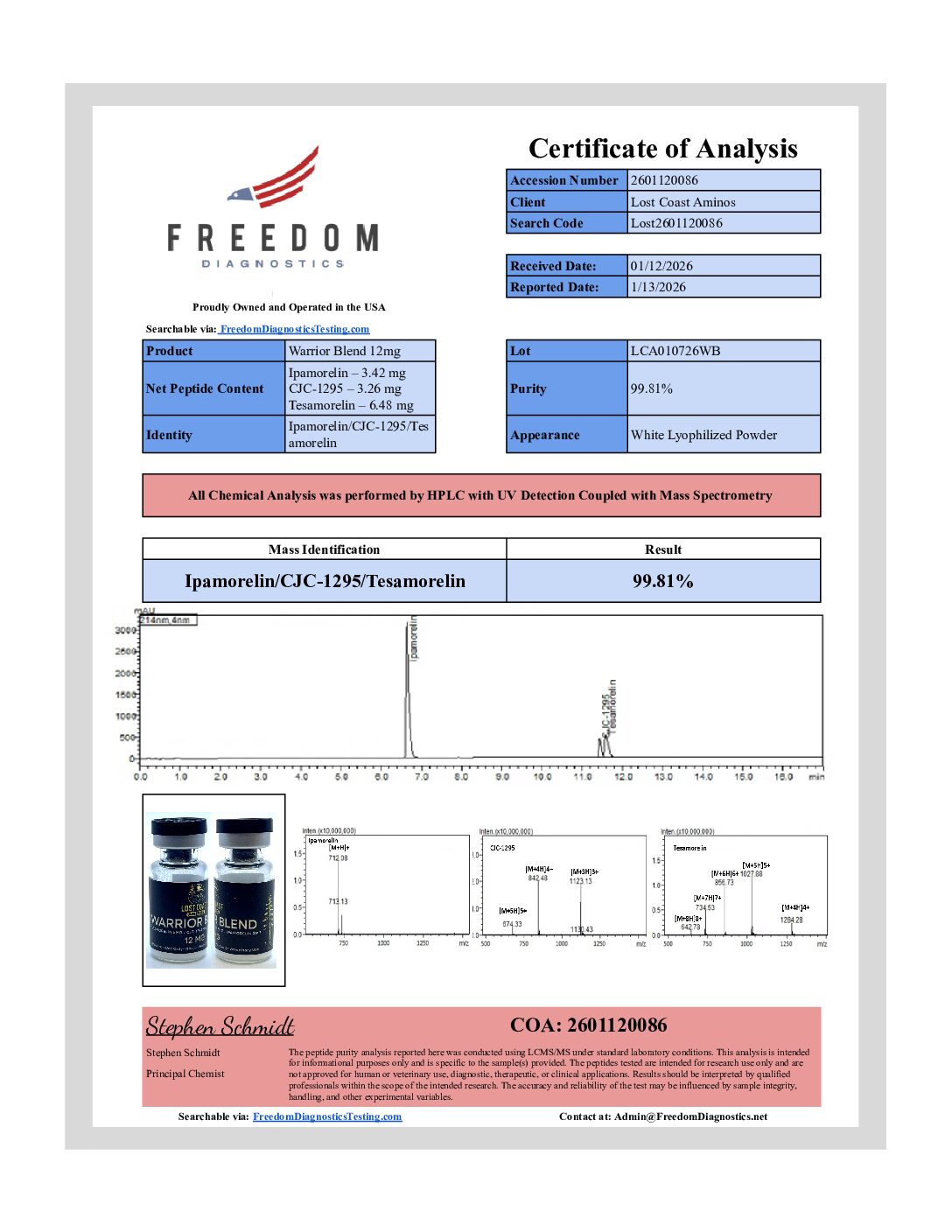 Tesamorelin 6 mg · CJC-1295 3 mg · Ipamorelin 3 mg Research Peptide Blend